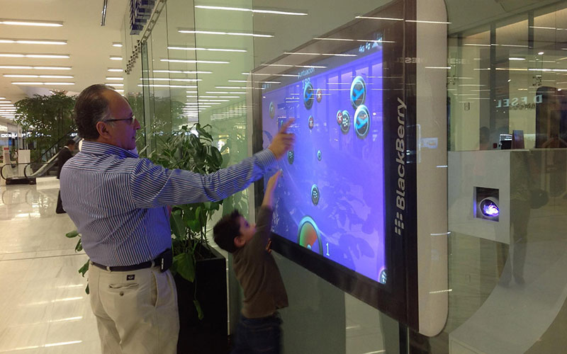 Noventa Grados le ofrece pantallas táctiles de gran formato con una óptima calidad de imagen y repuesta. Hasta 100" y 100 puntos de toque simultáneo, según sus necesidades.