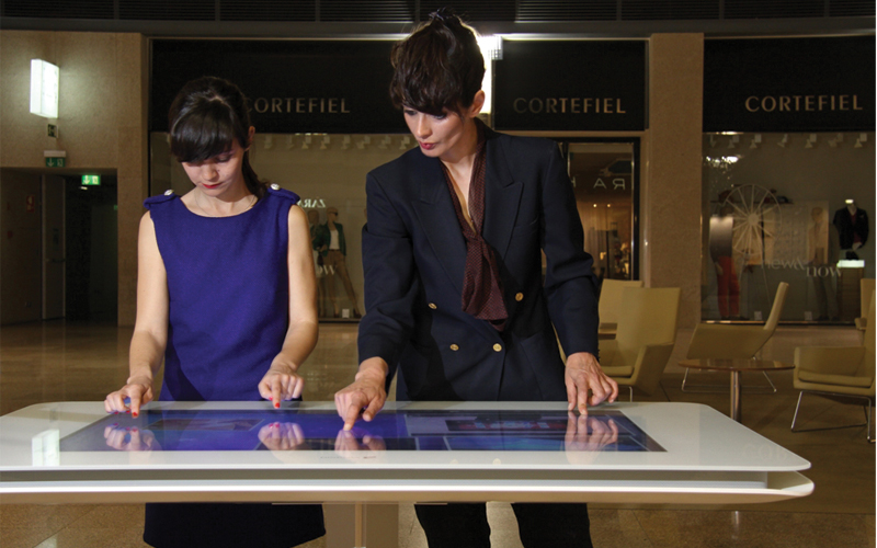 Con la Tecnología Táctil Capacitiva Proyectada es posible convertir un cristal en una pantalla táctil. Cuando se toca el cristal, se crea un cambio en la frecuencia en un punto en concreto cuyas coordenadas son indentificadas por el controlador.
